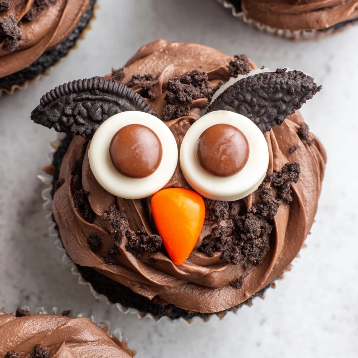 Try vanilla cupcakes instead of chocolate if you prefer a lighter base. You can also use vanilla sandwich cookies for snowy owl variations that look absolutely stunning.